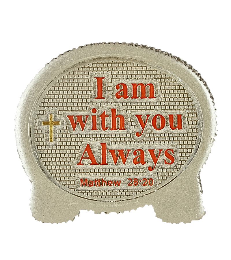 I am with you always – Tabletop decor is a beautifully handcrafted Christian tabletop decor piece, made from durable polyresin. Expertly designed and hand-painted, it brings an inspiring message of faith to your home, office, or place of worship. Perfect for churches, religious gift stores, and resellers looking for high-quality, spiritually uplifting decor. Customizable for bulk orders. Ideal for gifting on special occasions like baptisms, confirmations, and house blessings.