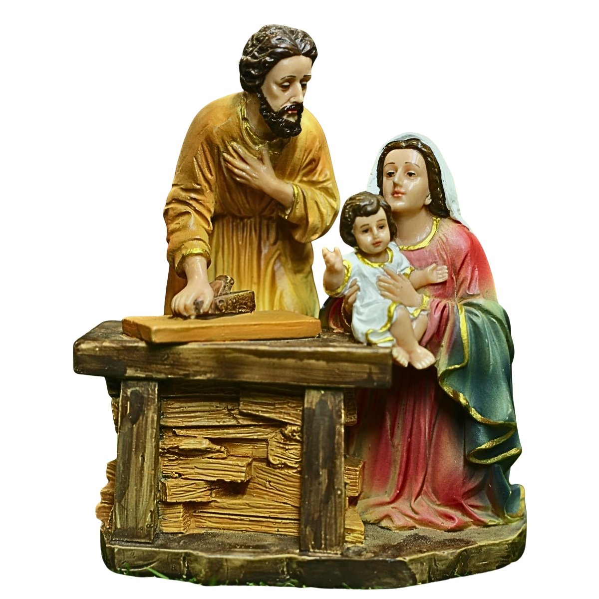 Joseph the worker with the Holy Family‚ 6.5″ Statue is a finely crafted Christian religious article made of premium polyresin. Designed with care and hand-painted for a unique touch, this table top blends devotion and artistry. Suitable for churches, home altars, religious gift stores, or resellers looking for authentic and inspirational decor. Every piece reflects spiritual significance and craftsmanship. Customizable for bulk orders.