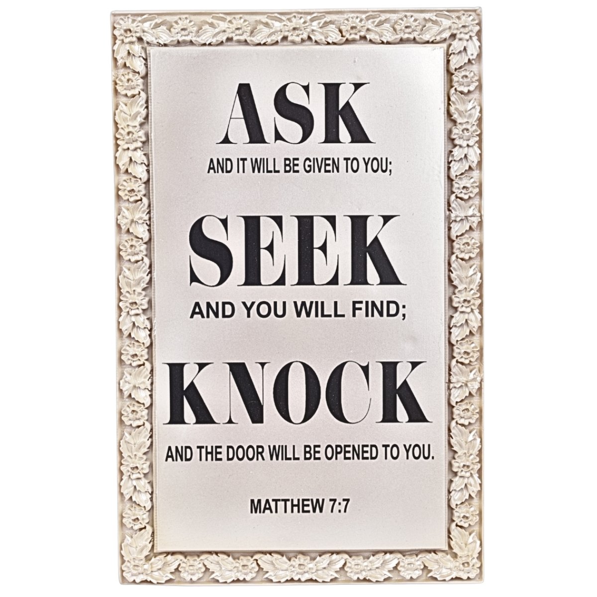 Matthew 7:7 – 5.5″ Resin Frame is a finely crafted Christian religious article made of premium polyresin. Designed with care and hand-painted for a unique touch, this frame blends devotion and artistry. Suitable for churches, home altars, religious gift stores, or resellers looking for authentic and inspirational decor. Every piece reflects spiritual significance and craftsmanship. Customizable for bulk orders.